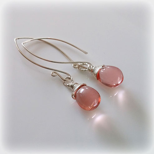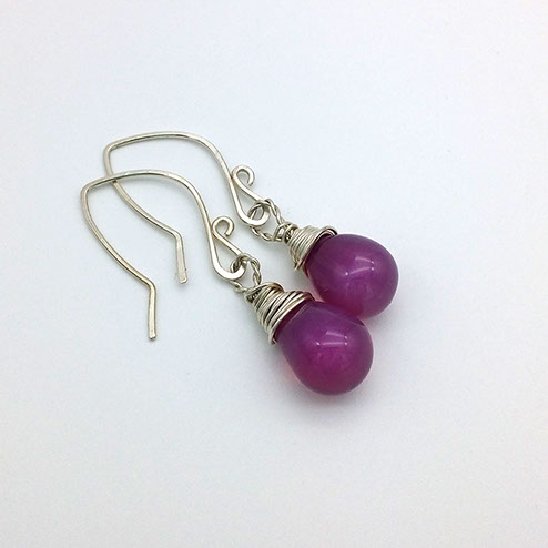 Berry pink czech glass teardrops wrapped in sterling silver wire.