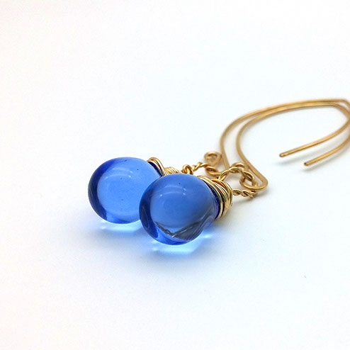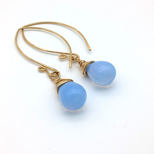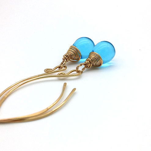 Aqua blue czech glass teardrops wrapped in gold filled wire.