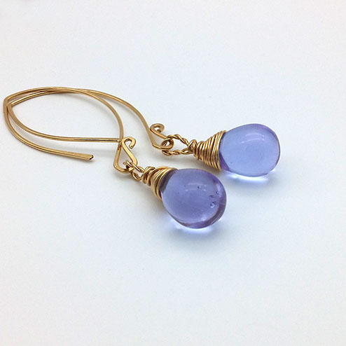 Light violet czech glass teardrops wrapped in gold filled wire.
