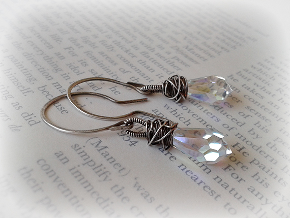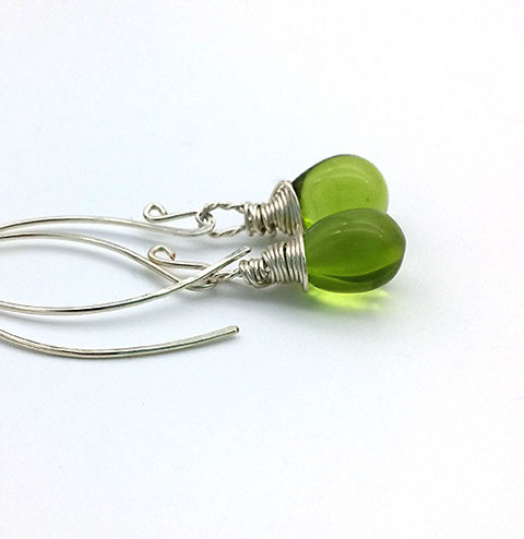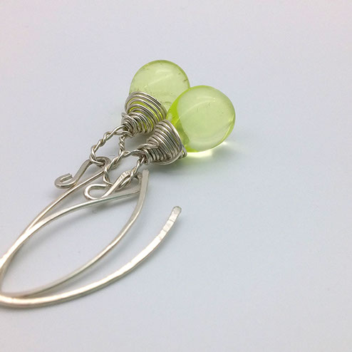 Light green czech glass teardrops wrapped in sterling silver wire.